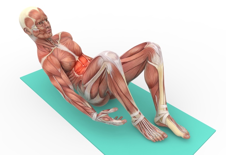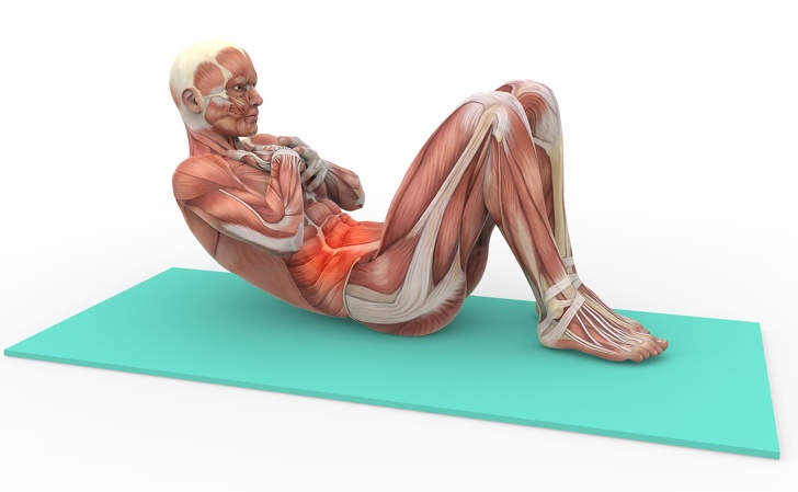2. Przyjmij pozycję, jak przy wykonywaniu pogłębionych brzuszków.