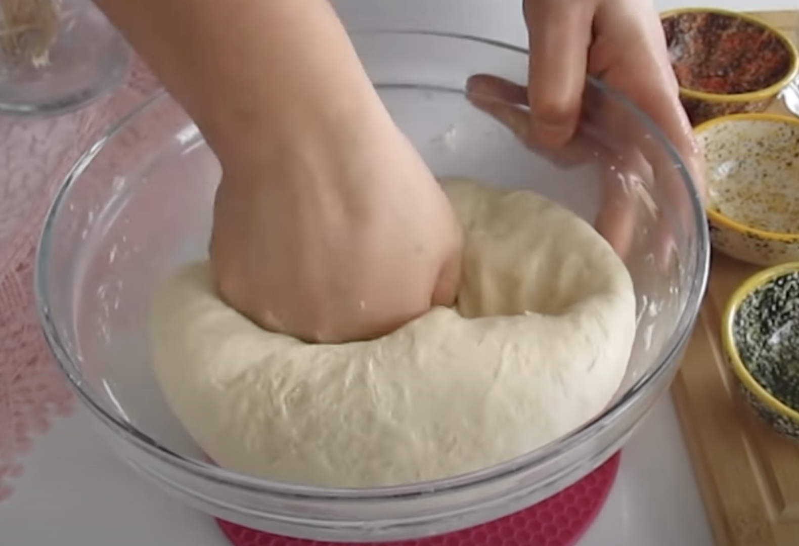Wyrobić ręcznie ciasto, ugniatając je. Powinno ono kwaśniej około 40 minut, a potem rozprowadzić je olejowanymi rękami.