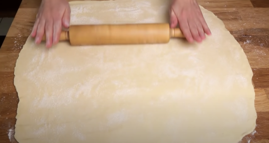 Po tym czasie, wyjmij ciasto i rozwałkuj cieniej na blacie podsypanym mąką.