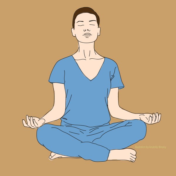 Rozluźnij się i rozciągnij kręgosłup. Jeśli chcesz lub będzie Ci wygodniej – wyciągnij szyję do góry. W tej pozycji wytrzymaj kilka minut, głęboko i płynnie oddychając. W ten sposób rozluźnisz mięśnie.