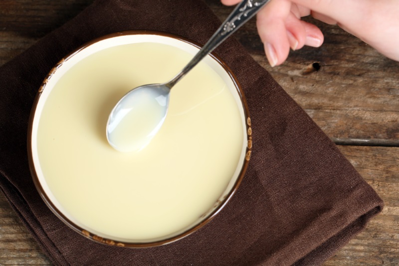 Po tym czasie rozpuść żelatynę w niewielkim rondelku lub w kuchence mikrofalowej. Następnie wymieszaj ją dokładnie ze skondensowanym mlekiem.
