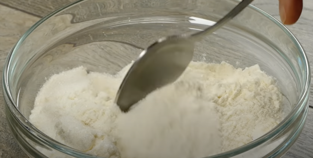 Wymieszać kolejno mąkę i składniki piaskowe.
