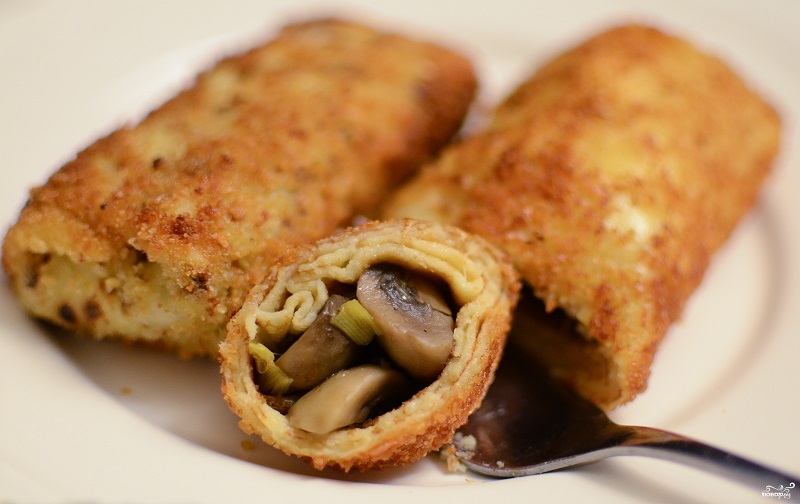 Składniki: 500 gram pieczarek, olej do smażenia, cebula, 2 łyżki śmietany, 2 łyżki mąki, 1,5 szklanki mleka. Posiekaną cebulę zeszklij na patelni cebulę. Dodaj drobno pokrojone pieczarki i jeszcze przez kilka minut smaż. Dodaj do masy śmietanę, mleko oraz mąkę. Cale nadzienie przypraw solą i pieprzem.
