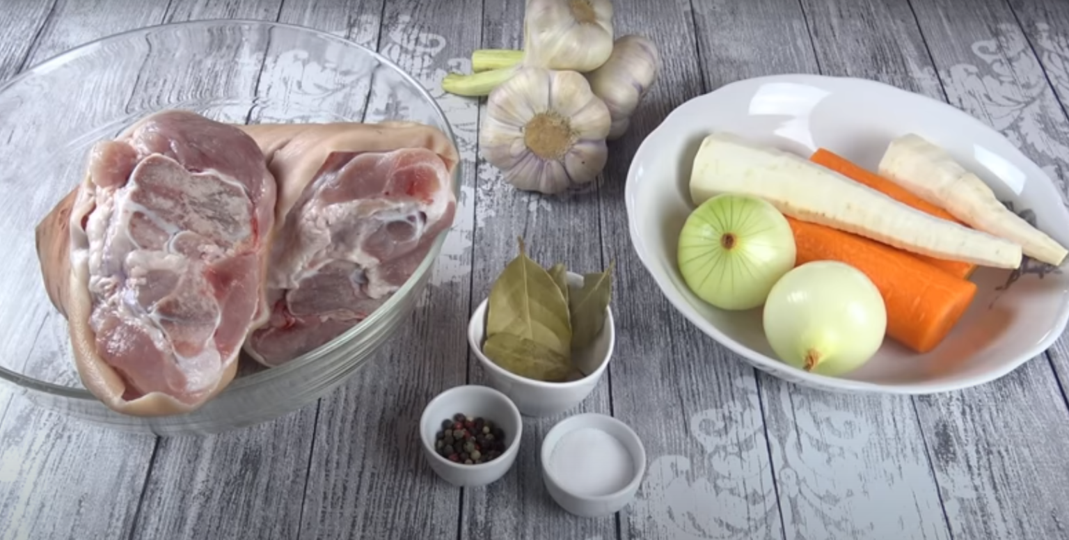 Warzywa (poza czosnkiem) umyj i obierz, włóż do garnka z mięsem. Dodaj liście i przyprawy. Gotuj całość przez ok. 4 godziny, aż mięso zmięknie i będzie ładnie odchodzić od kości.