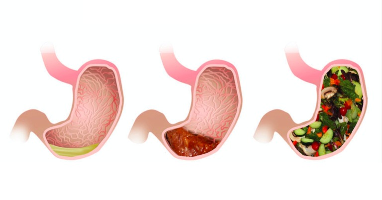 Ile objętościowo zajmuje 500 kalorii w żołądku w zależności od rodzaju pożywienia?