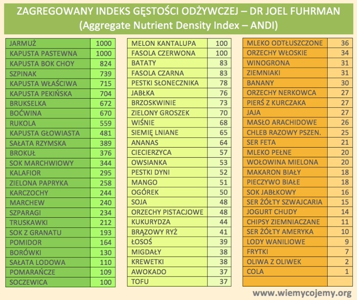 Dzięki diecie opartej na pokarmach o niskiej gęstości kalorycznej – nie przejadamy się, szybciej czujemy się syci oraz dostarczamy organizmowi znacznie więcej wartości odżywczych. W większości przypadków, najgęstsze odżywczo są produkty o najmniejszej gęstości energetycznej (szczególnie zielone warzywa liściaste oraz surowe owoce).