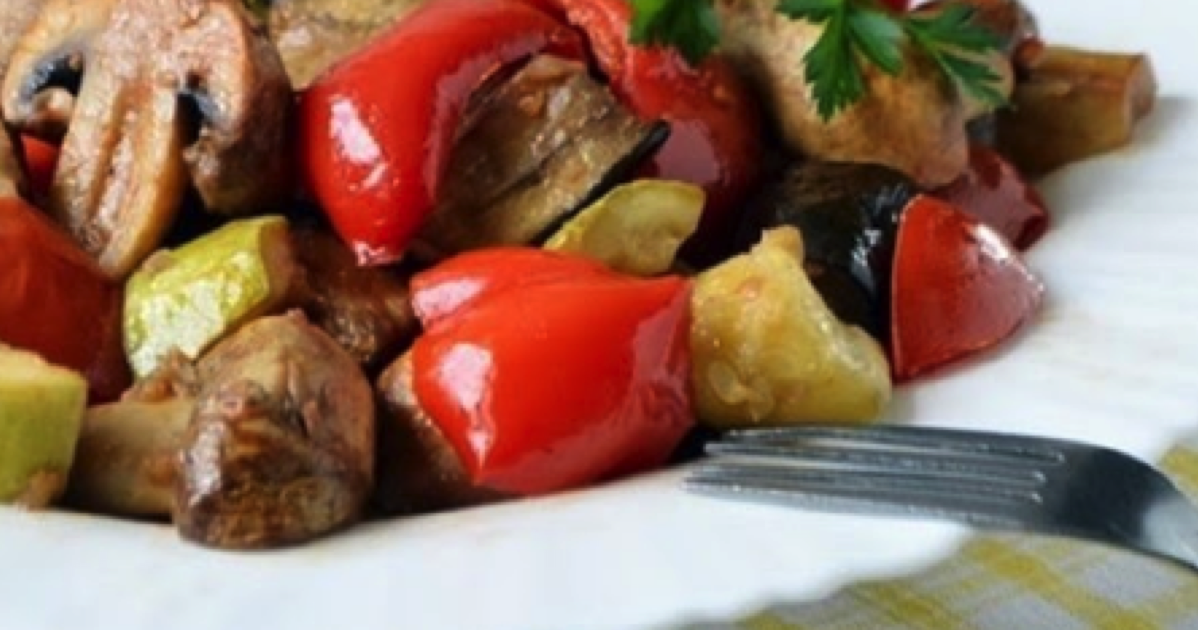 Poniżej przedstawiamy przepis na warzywa z pieczarkami pieczone w piekarniku. Do naszej potrawy wykorzystamy pomidory (2 szt.), czerwoną paprykę (3 szt.), bakłażana (młody, nie za duży) oraz cukinię (1 szt.). Bazę dania stanowi marynata sojowa.