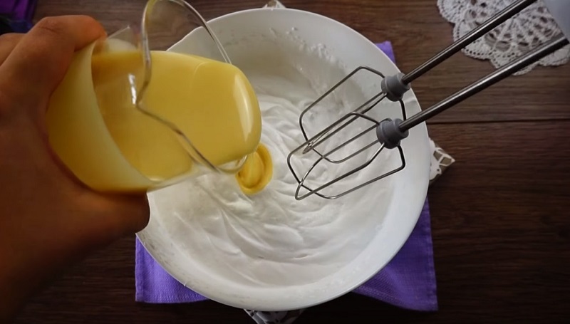 Stopniowo dodajemy mleko skondensowane i nadal mieszamy. Jeżeli nie przepadasz za zbyt słodkimi lodami, możesz użyć mniejszą ilość mleka.