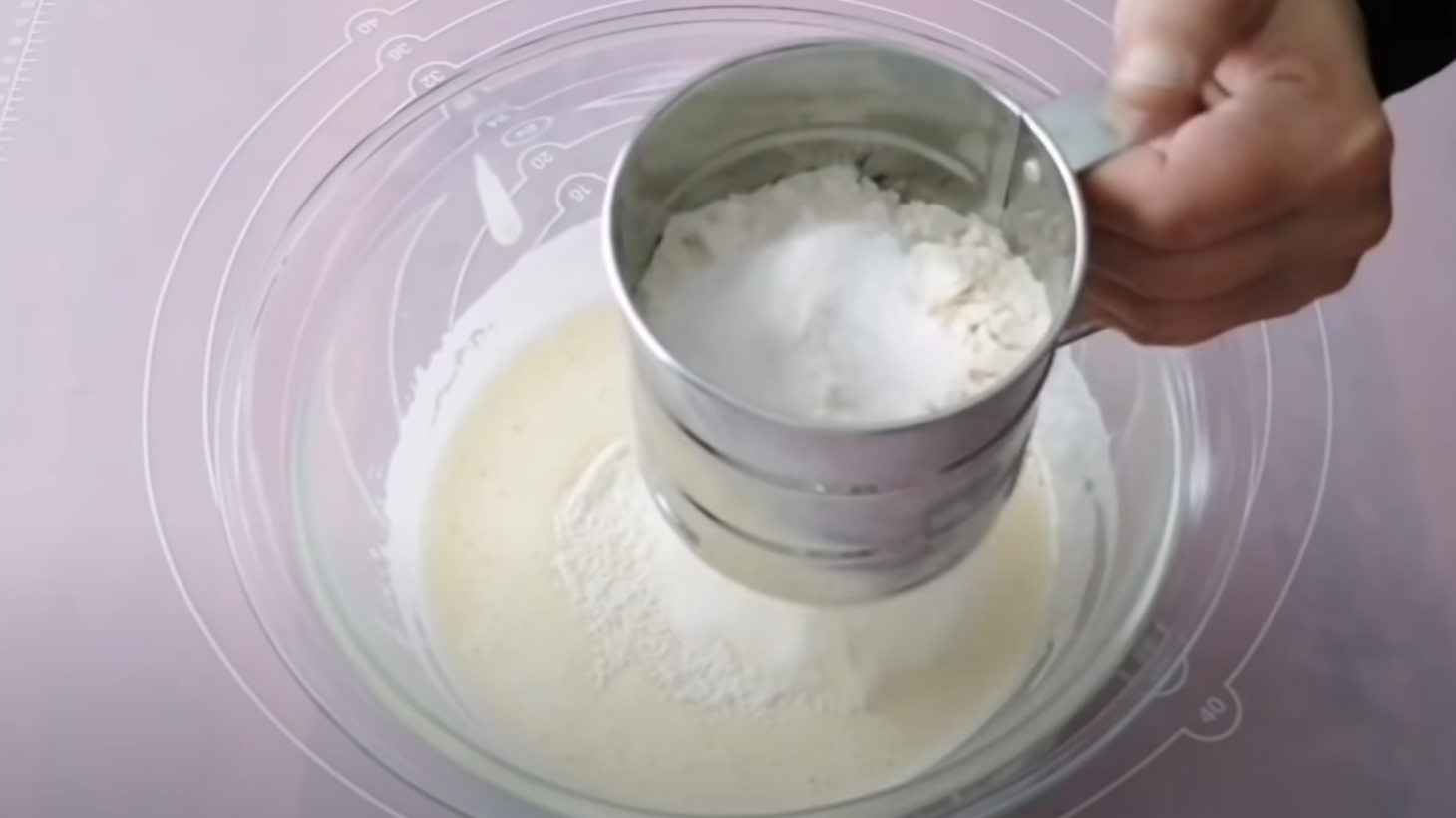 W osobnej misce ubijamy 2 jajka z cukrem i dodajemy mleko. Do tej mieszanki pomału dodajemy mąkę z proszkiem do pieczenia.