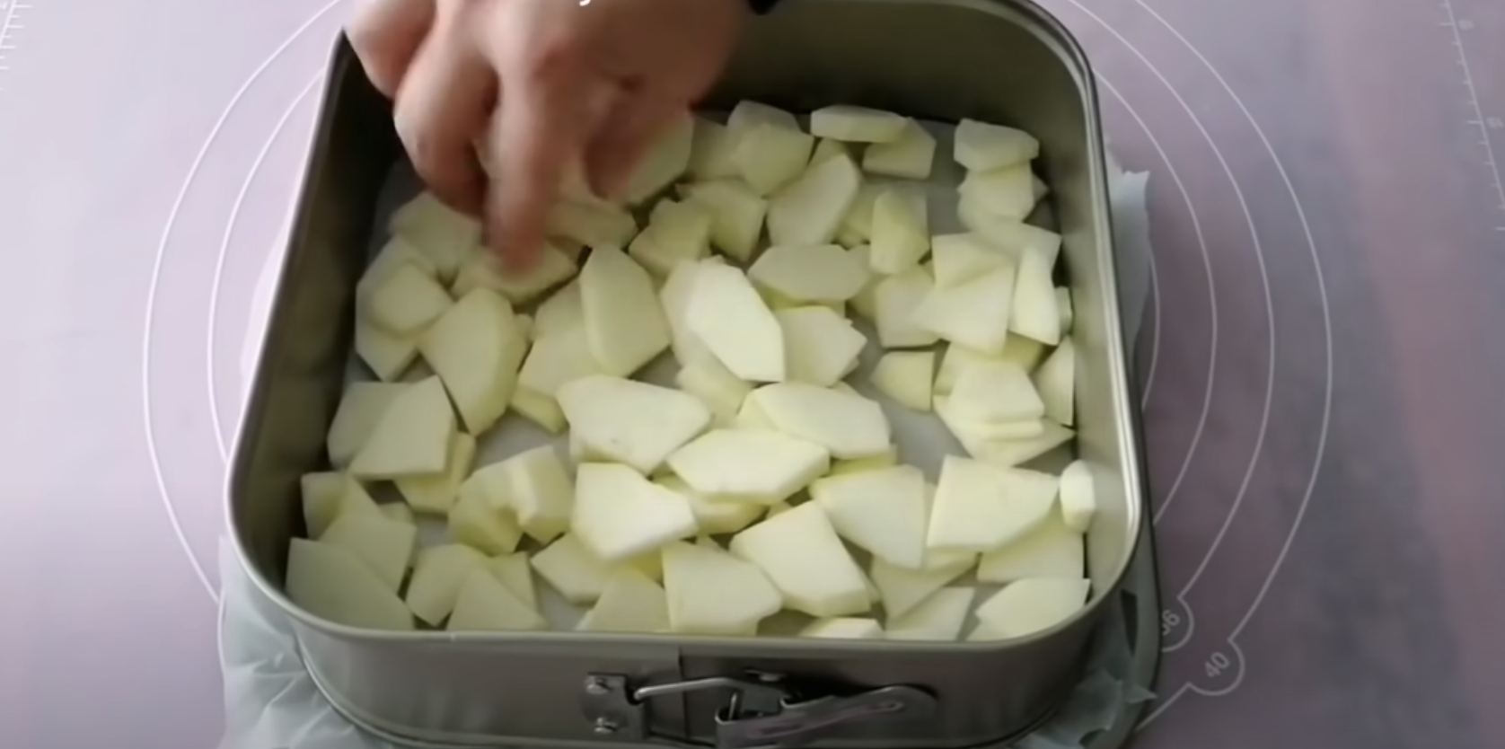 Na formę wylewamy ciasto, na którym robimy kratkę z kremu.