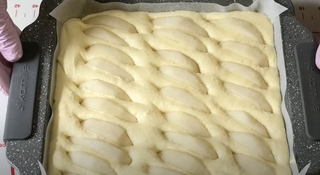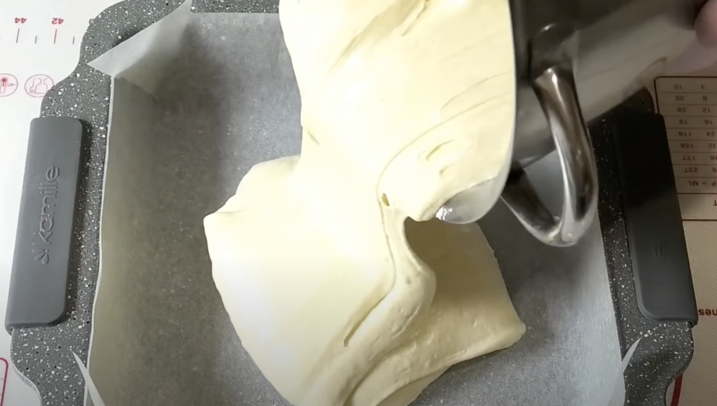 Ciasto wylewam na wyłożoną papierem do pieczenia blaszkę.