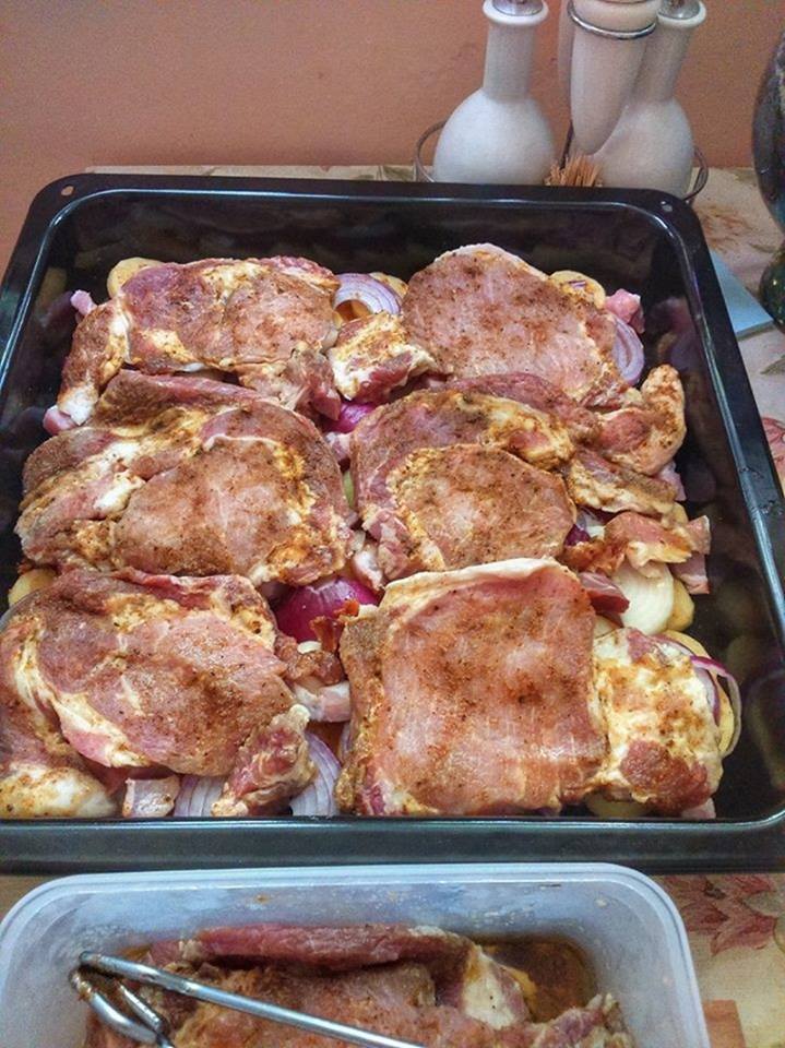 W pierwszej kolejności należy przygotować marynatę do mięsa. W tym celu wymieszaj ze sobą piwo, miód, olej i przyprawę do gyrosa. Wyłóż blachę papierem do pieczenia, a następnie ułóż na niej pokrojone w plasterki ziemniaki. Posmaruj je cienką warstwą marynaty (pozostała część marynaty przyda się podczas marynowania mięsa). Włóż mięso do marynaty i zostaw na co najmniej pół godziny.