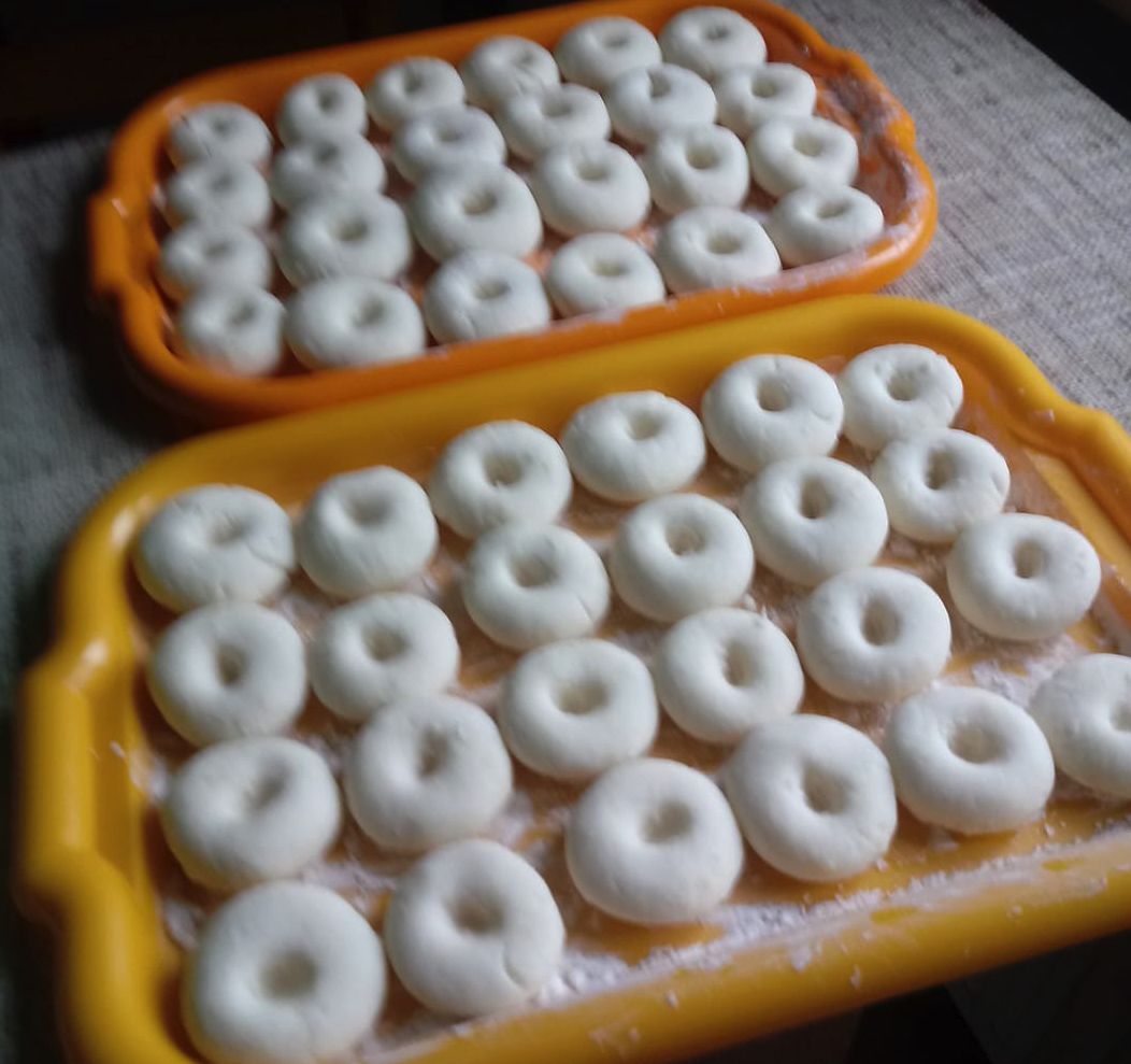 3. Dodaj odjęty kawałek ziemniaków , wbij jajko oraz dodaj soli do smaku. Wyrób ponownie ciasto. Z uzyskanego ciasta zacznij formować małej wielkości kulki. Lekko spłaszcz, używając palca zrób wgłębienie na środku każdej kluki.