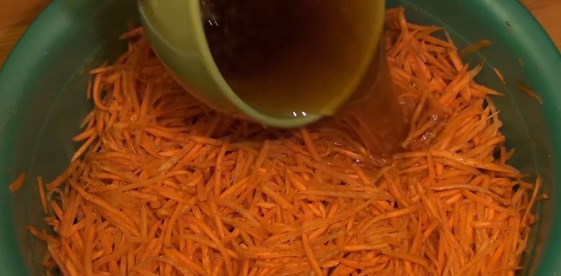 Marchew mieszamy z olejem i dodajemy posiekany czosnek i zmiażdżone nasiona kolendry. Całość studzimy i kosztujemy – w razie potrzeby można jeszcze doprawić do smaku.