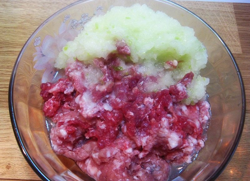 W większym naczyniu wymieszaj mostek wołowy z jagnięciną, dodaj do mięsa wcześniej zmieszaną sodę z cytryną i całość dokładnie mieszaj do momentu, aż całość stanie się lepka.