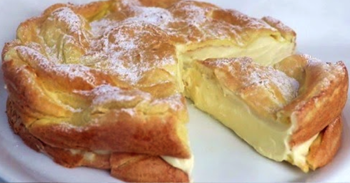 Na pierwsze schłodzone ciasto wyłóż krem budyniowy. Drugim ciastem przykryj całość. Można posypać cukrem pudrem.