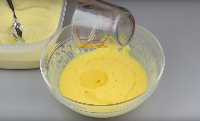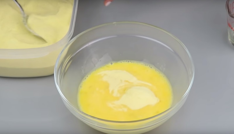 W misce dokładnie ubij jajka, które będą podstawą tego ciasta. Następnie dodaj do nich kaszę mannę i dokładnie połącz składniki ze sobą. Całość odstaw na 5 minut.
