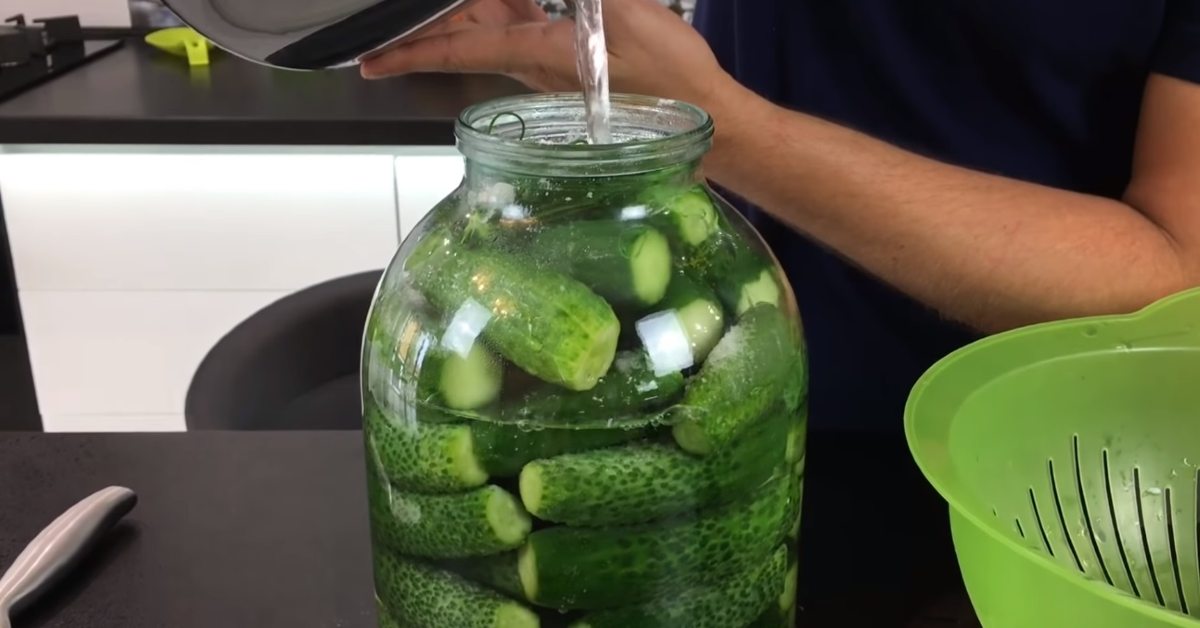 Gotujemy wodę i zalewamy nią ogórki. Słoik zamykamy szczelną pokrywką, którą następnie delikatnie przekręcamy, aby sól lepiej rozprowadziła się po pojemniku.