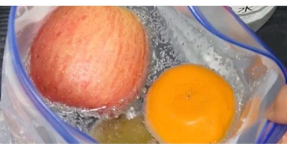Do worka włóżcie umyte owoce (nie ma konieczności ich obierania). Zalejcie je wodą i wstawcie zamknięty worek do lodówki na 6-7 godzin.