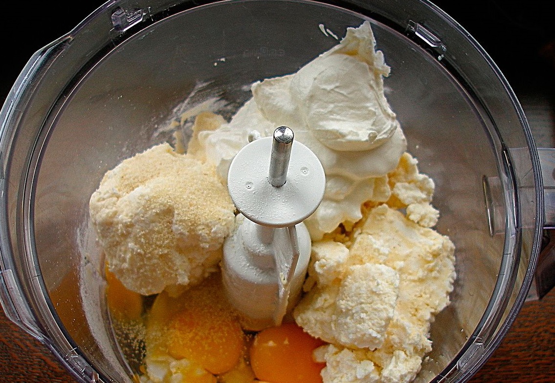 W tym czasie połącz ze sobą jajka, twaróg, śmietanę oraz dwa rodzaje cukru. Po wykonaniu tych wszystkich czynności możesz przejść do następnego etapu.