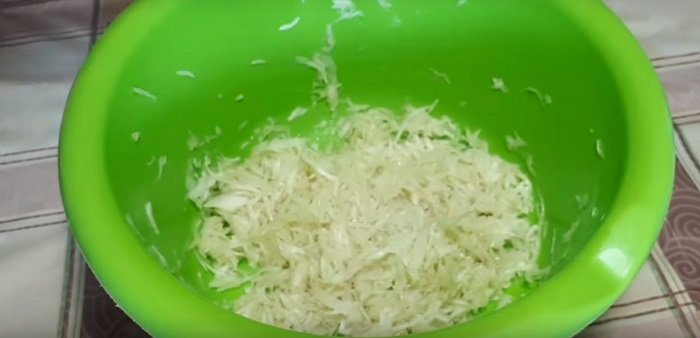 Kapustę pokroić i przełożyć ją do głębszej miski. Cebulę obrać, a następnie zetrzeć na tarce o grubszych oczkach i wsypać ją do kapusty.