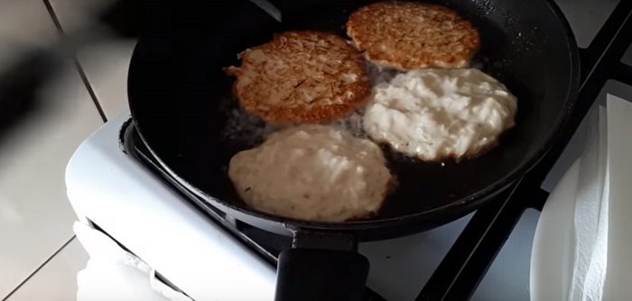 Patelnie dobrze rozgrzać z zawartością oleju. Kiedy będzie on już ciepły, za pomocą stołowej łyżki formować na patelni porcje placków, aby kształtem i wyglądem przypominały one tradycyjne ziemniaczane placki.