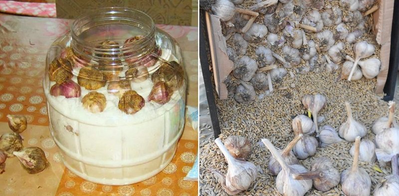 Jeszcze innym sposobem na przechowywanie czosnku i ochronę przed wilgocią są trociny, zboża, popiół oraz mąka. Trzeba tylko pamiętać, aby górna warstwa produktu nie była mniejsza niż 2 cm.