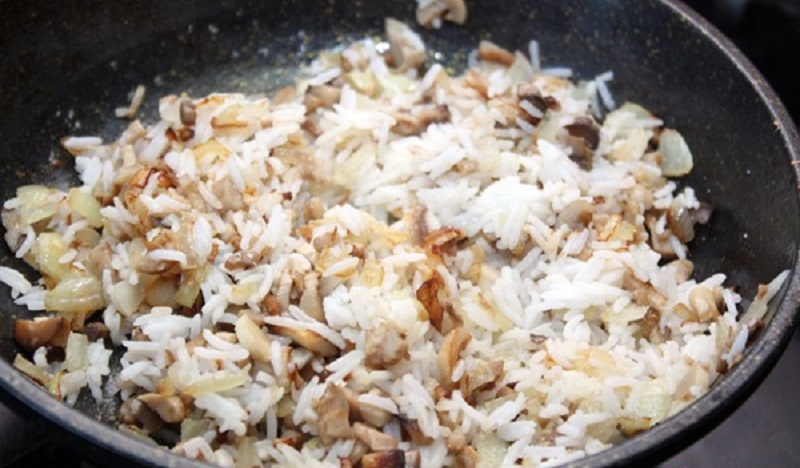 Ugotowany i ostudzony wcześniej ryż dodaj na patelnię do pieczarek, całość przypraw także według swojego uznania. Po smażeniu odstaw wszystko do ostygnięcia. Schłodzoną mieszankę zmiksuj za pomocą blendera.