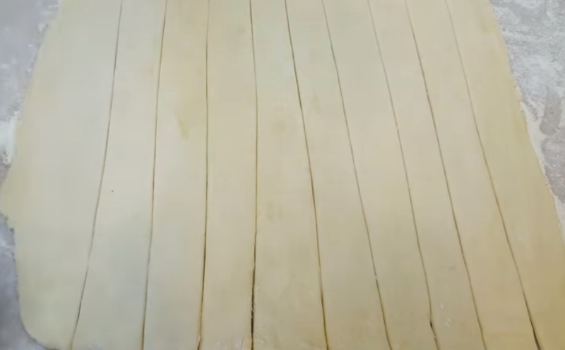 3. Rozwałkuj cienko ciasto i pokrój w paski.