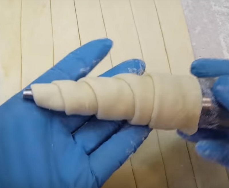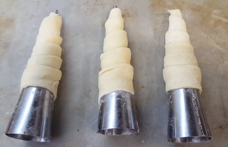 4. Uformuj z ciasta, wokół formy stożek.