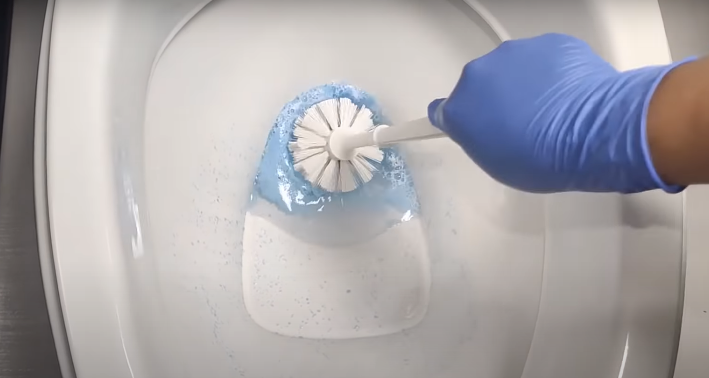 Tak utworzoną mieszaninę przelej do muszli klozetowej. Dokładnie wyszoruj toaletę od wewnątrz za pomocą specjalnie przeznaczonej do tego celu szczoteczki, a następnie myj ją od góry za pomocą mieszaniny oraz gąbki.