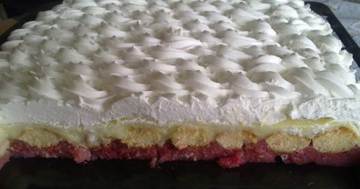 Gotujemy aż całość zgęstnieje i wylewamy na blaszkę z wysokimi brzegami i studzimy. Na wiśnie wykładamy warstwę biszkoptów.