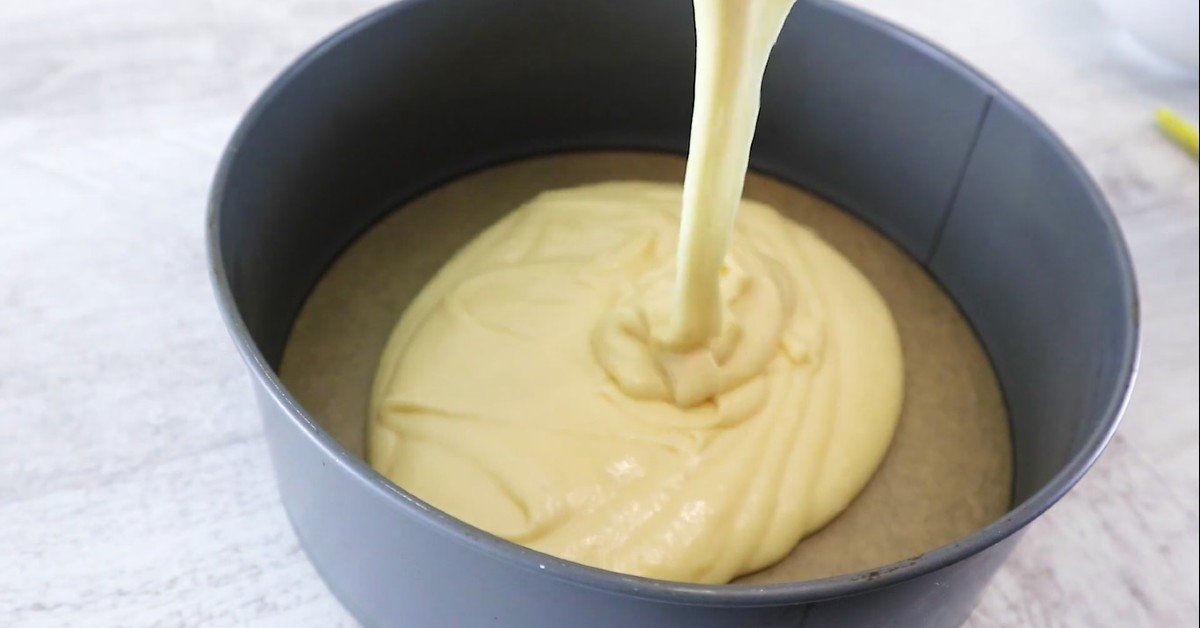Przygotowując włoskie ciasto, warto wykorzystać okrągłą tortownicę. Przykryj ją pergaminem i na wierzch wylej gotowe ciasto.