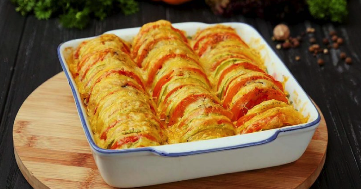 Poniższy przepis na cukinię zapiekaną z pomidorami wydobywa pełną wartość tego warzywa, a połączenie z chrupiącym serem sprawi, że nawet mięsożercom spodoba się ta wegetariańska potrawa.
