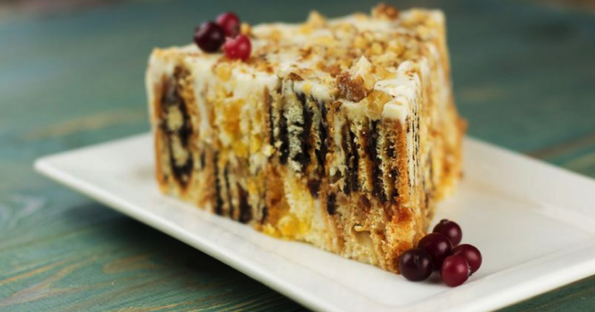 Przygotuj formę, wykładając ją folią spożywczą i smarując 3 łyżkami śmietany. W formie ułóż pionowo warstwę rulonów i posmaruj śmietaną. W taki sam sposób zrób kolejne dwie warstwy. Całość włóż do lodówki na 8-10 h.